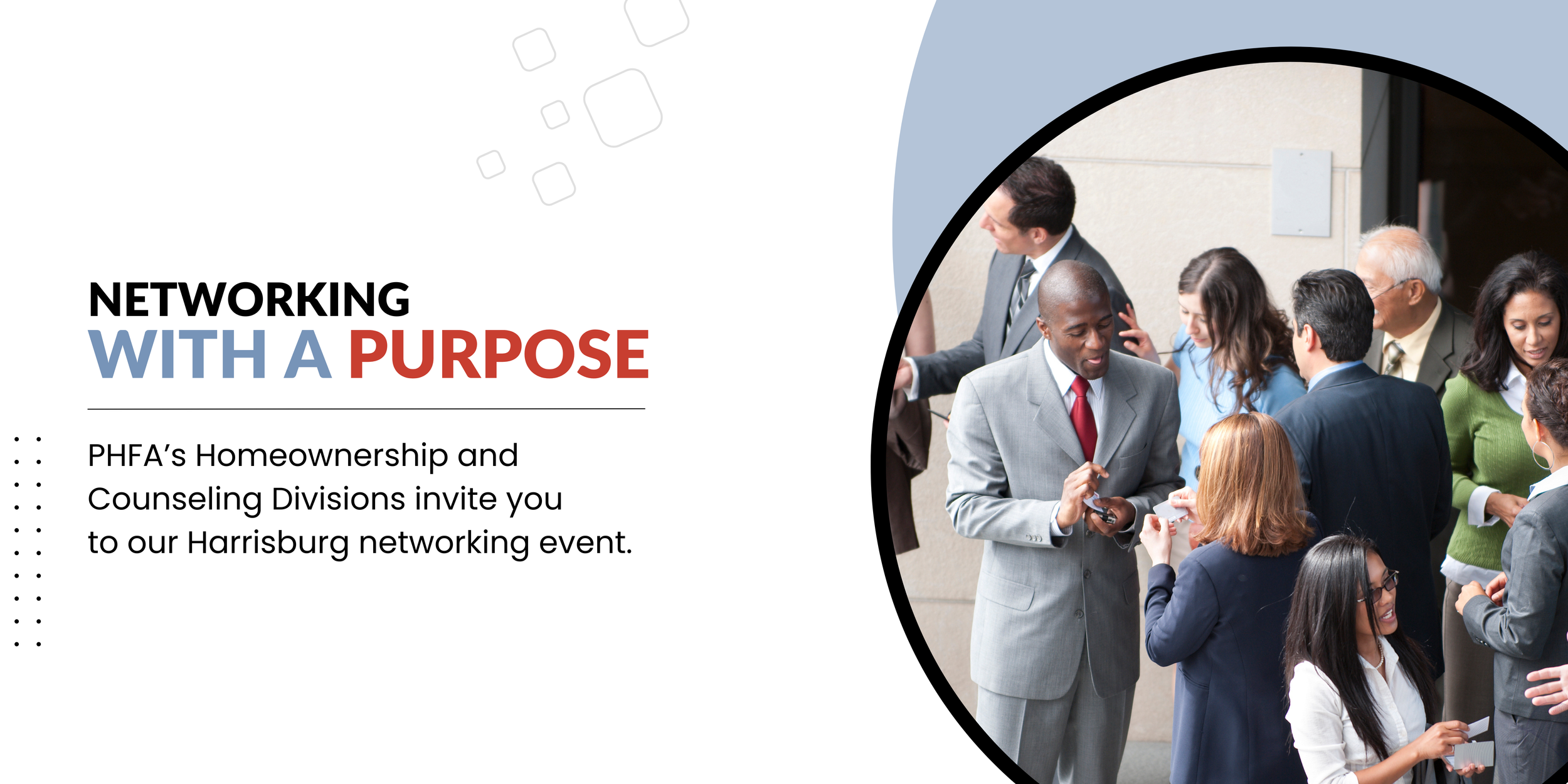Pennsylvania Housing Finance Agency’s Homeownership and Counseling Divisions invite you to a networking event to help PHFA-approved participating lenders, counseling agencies and Pennsylvania Association of Realtors members to get to know each other and build a stronger PHFA business relationship.